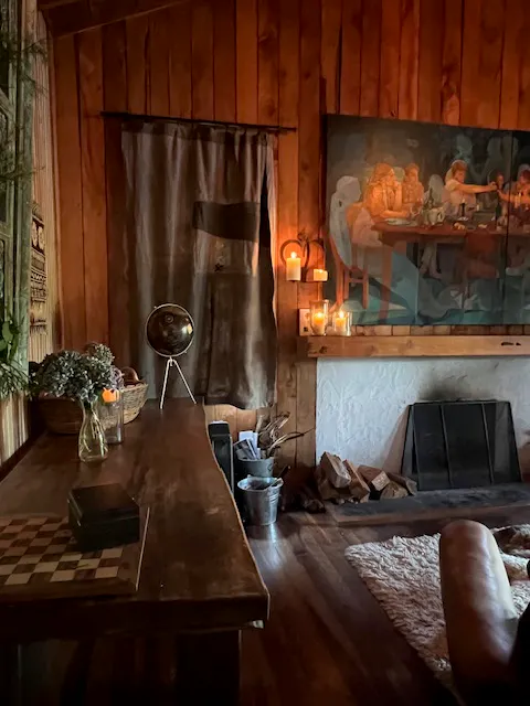 There is an open fireplace at one end and plenty of dry firewood stored out the back.