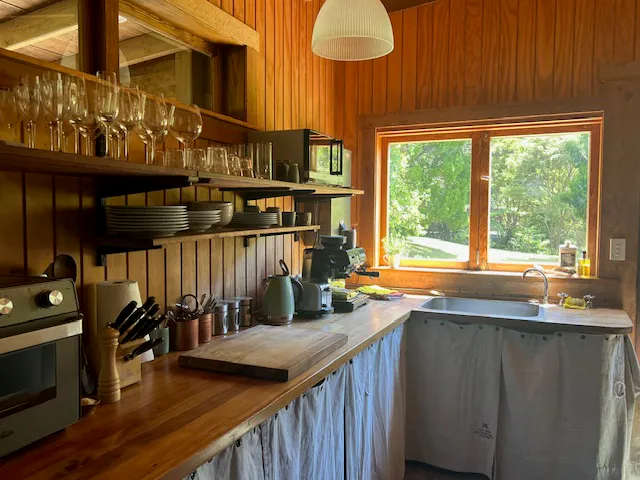This is self-catering accommodation, there is a kitchen on site and it is well set up with equipment including a bench oven, fridge, a Weber BBQ, microwave, toaster, kettle and all the crockery and cutlery you may require. It also has a commercial gas oven. In the storage area at the rear there is also a washing machine. There is plenty of gas hot water.